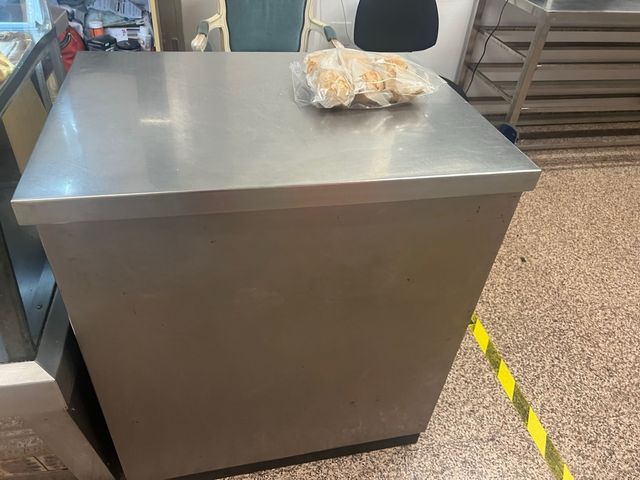Vitrina expositora de acero inoxidable, ideal para negocios. - Superficie de acero inoxidable. - Diseño robusto y funcional.