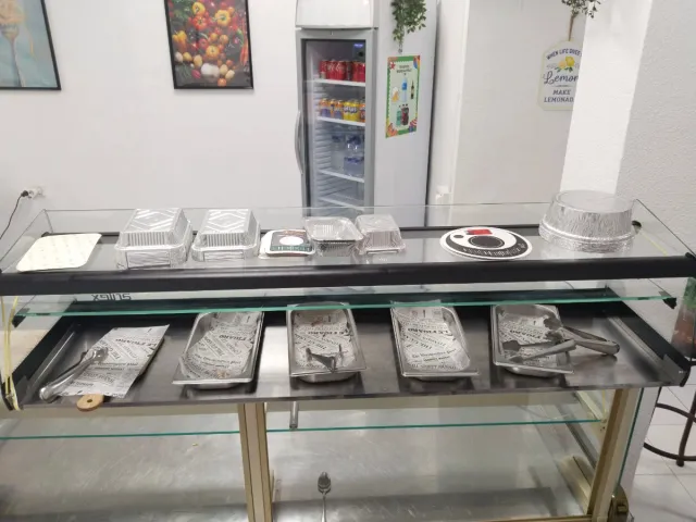 Vitrina expositora con estructura de cristal. - Estantes de cristal, 2 alturas. - Base metálica.