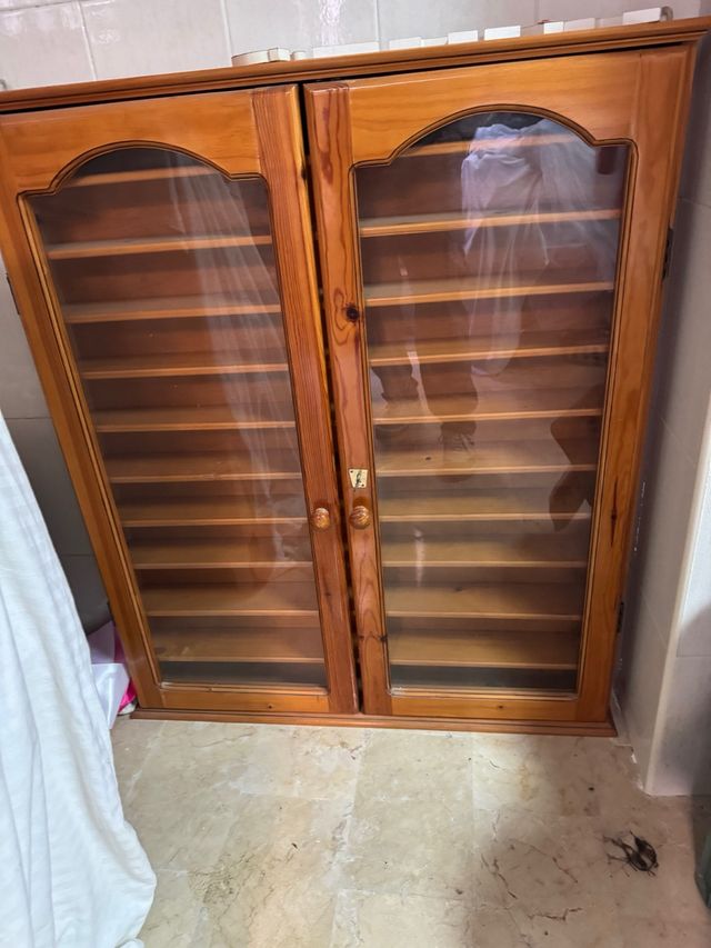 Detalles del productoBonita vitrina de madera ideal para coleccionistas. Tiene puertas de cristal y estantes de madera. Es perfecta para mostrar y proteger tus objetos preciados.