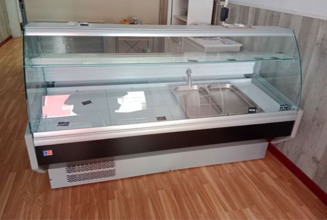 Detalles del productoVitrina expositora con diseño curvo y acabado moderno. Ideal para exhibir productos.con tres puertas de nevera