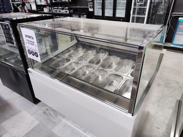 Detalles del productoVitrina para helados. Capacidad 12 sabores. Producto NUEVO. Para más información contacte con nosotros 613 94 62 14. Carlos. Atendemos WhatsApp. Realizamos envÃos a toda España 48/72 horas Visite nuestra tienda fÃsica en Málaga, disponemos de los mejores precios en maquinaria de hostelerÃa nueva. Todo con su garantÃa. Consúltenos sin compromiso. Medidas del producto