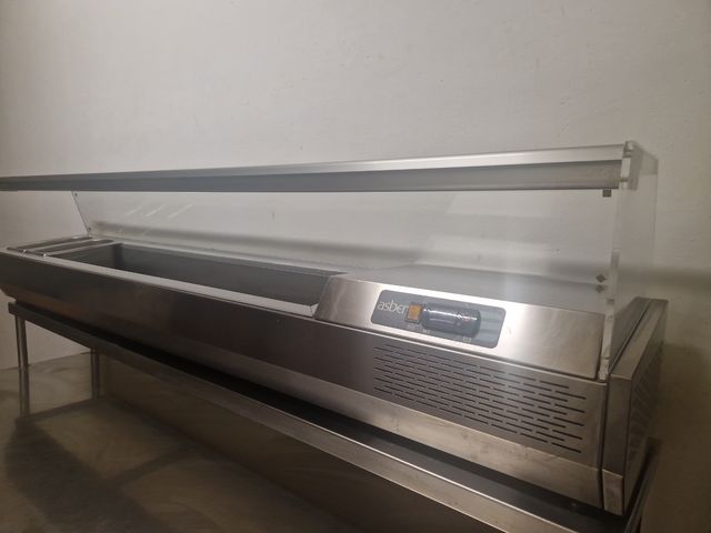 Vitrina refrigerada de la marca Asber con construcción de cris. - Diseño moderno y funcional. - Materiales de alta calidad. Medidas largo 202cm Alto 44cm Ancho 34cm