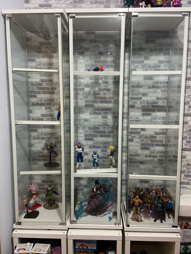 Conjunto de vitrinas con estructura de metal y paneles de cristal. 79 euros cada una preguntar sin compromiso