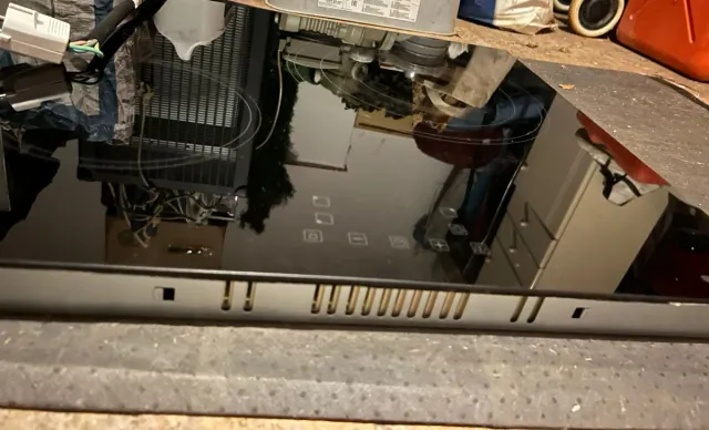 Vitrocerámica de inducción con superficie de cristal negro. - Controles táctiles. - Indicadores luminosos de zona de cocción. - Marco frontal con rejilla de ventilación.