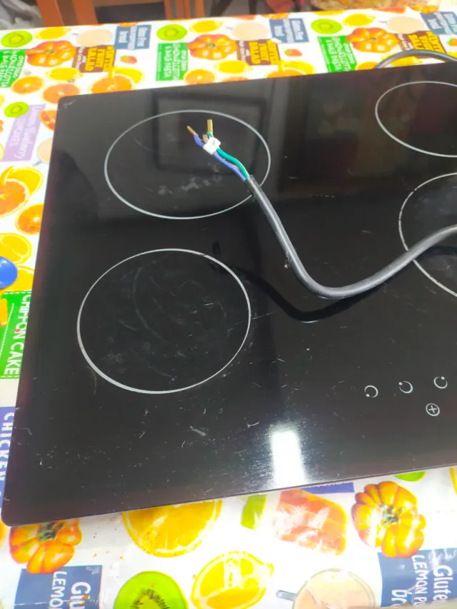 Vitrocerámica de cuatro fuegos en buen estado. - Superficie de cristal negro. - Controles táctiles. - Diseño moderno.