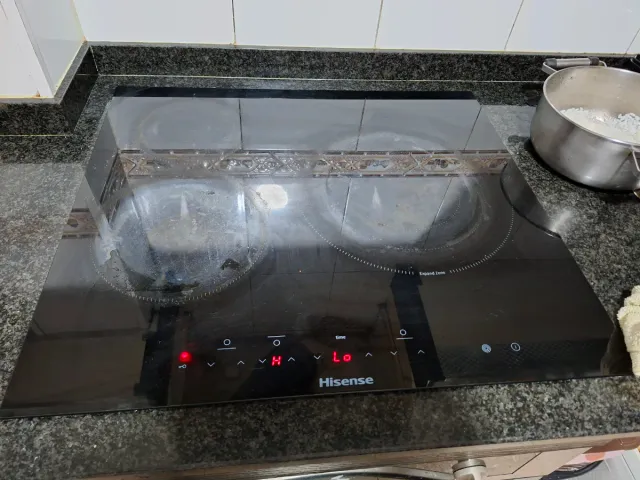 Vitrocerámica Hisense con tres zonas de cocción. - Panel de control táctil. - Indicador de calor residual. - Función Expand Zone para ampliar zona de cocción.