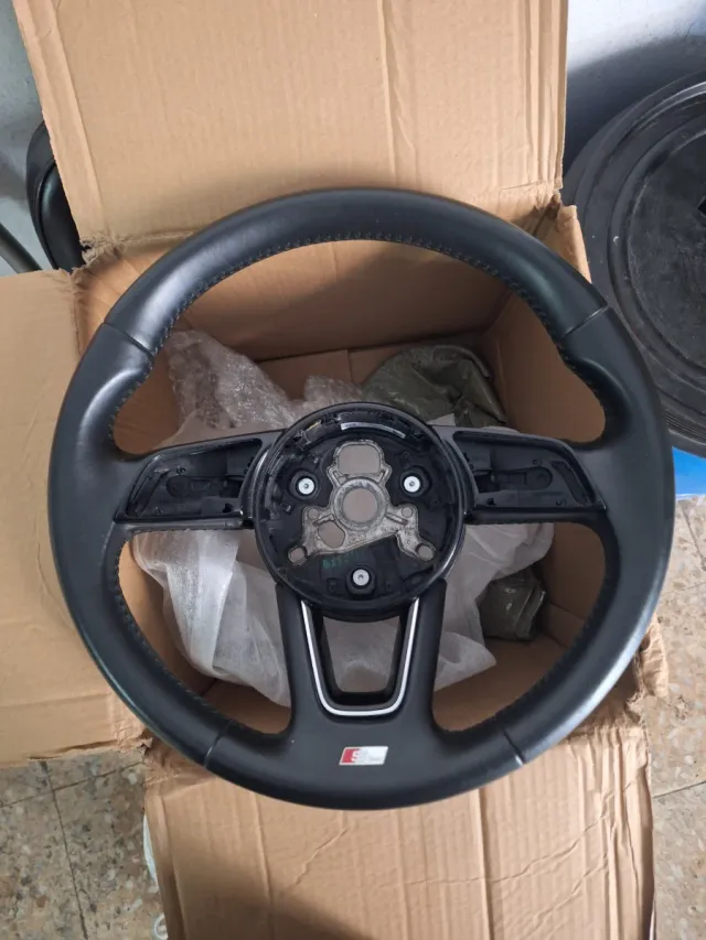 Volante para Audi A3 modelo 8V - Material: Cuero. - Acabado: Negro con detalles plateados. - Logo S-Line -Ningun desgaste -ORIGINAL