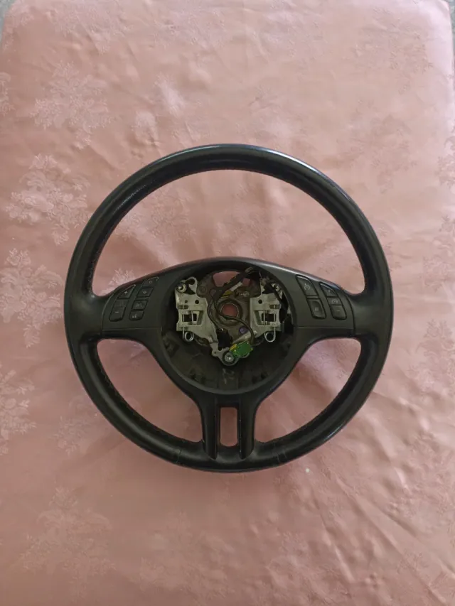 Volante deportivo para BMW Serie 3 E46. - Diseño ergonómico. - Botones multifunción integrados. - Acabado en cuero negro.