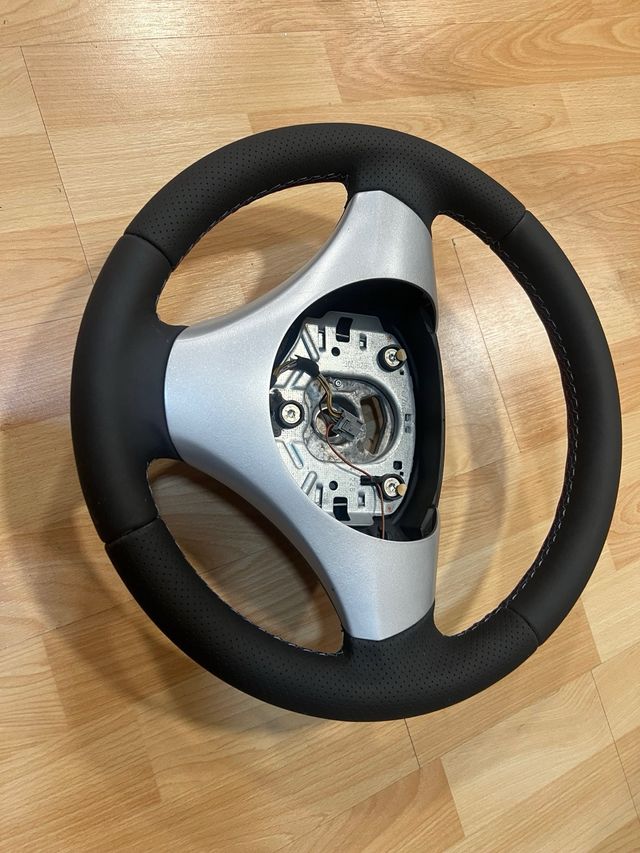 Detalles del productoVendo volante deportivo para BMW serie 3 (E90, E91, E92) y serie 1 (E87). recien tapizado en piel natural con laterles perforados y costuras negras negro.