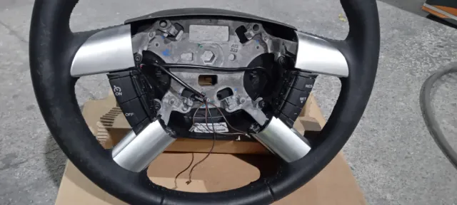 Volante de coche con mandos integrados y preparación para airbag. - Diseño deportivo con detalles plateados. - Botones de control en el lateral izquierdo y derecho.