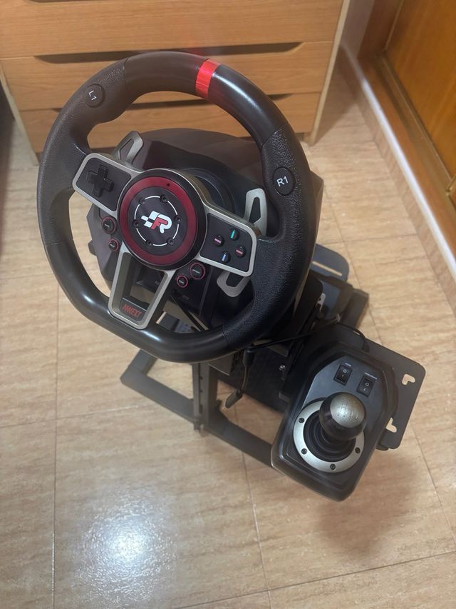 Detalles del productovolante multifuncion (simulando mando play) boton de programacion para el formula 1 (da igual año) pedales de hierro de buena calidad y base de hierro forjado regulable para diferentes alturas , los pedales igual , incluye cambio de marchas manual y automatico con levas , los pedales los sustitui por unos de respuesta rapida para mejorar la experiencia al jugar , la calidad habla por si sola , freno de mano por boton , incluye tambien el modo de conduccion personalizable , tambien trae como ultimo extra boton de 280º o 960º grados para girar el volante , no es por que lo venda yo pero el simulador te mete dentro de un frenesi de velocidad adictivo . Me lo compre por capricho y lo he usado 3 veces hasta el punto de casi regalarselo a un amigo , puede incluir el gran turismo sport por 10€ mas , precio poco negociable