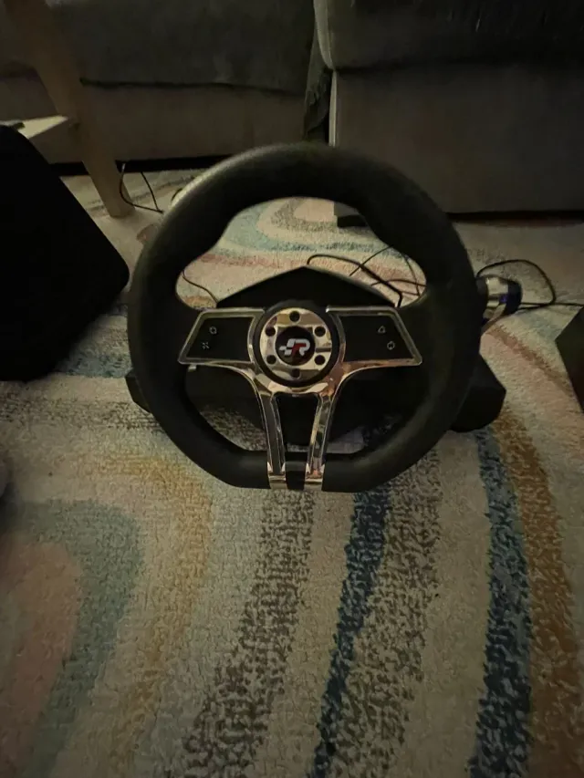 Volante para consola con diseño deportivo. - Acabado en negro. - Detalles cromados. - Botones integrados.