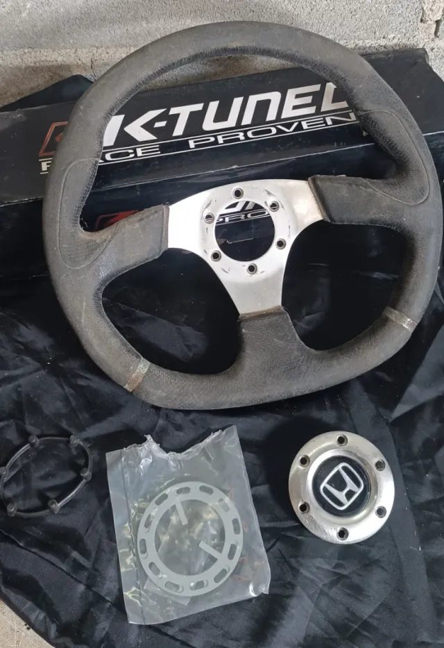 Volante deportivo de tres radios con claxon y juntas. - Claxon con logo de Honda. - Incluye tornillo y juntas.