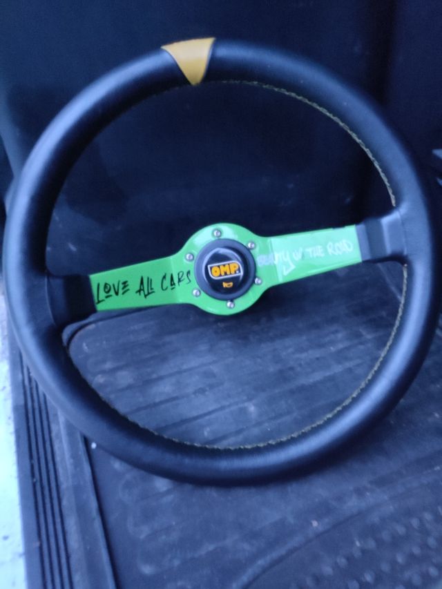 Volante desplazado con bocina omp y piña.la piña estava montada en un Citroen,xro vale también para Peugeot y nose pa si alguno mas