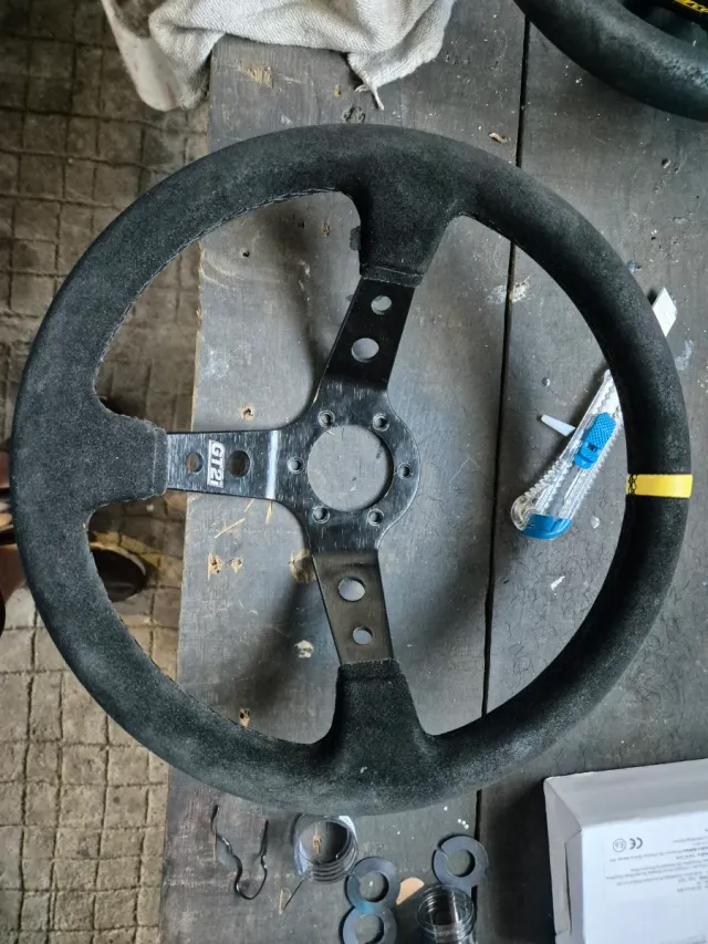 Volante deportivo desplazado gt2i de piel vuelta, en buen estado, poco uso - Diseño deportivo. - Color: Negro.