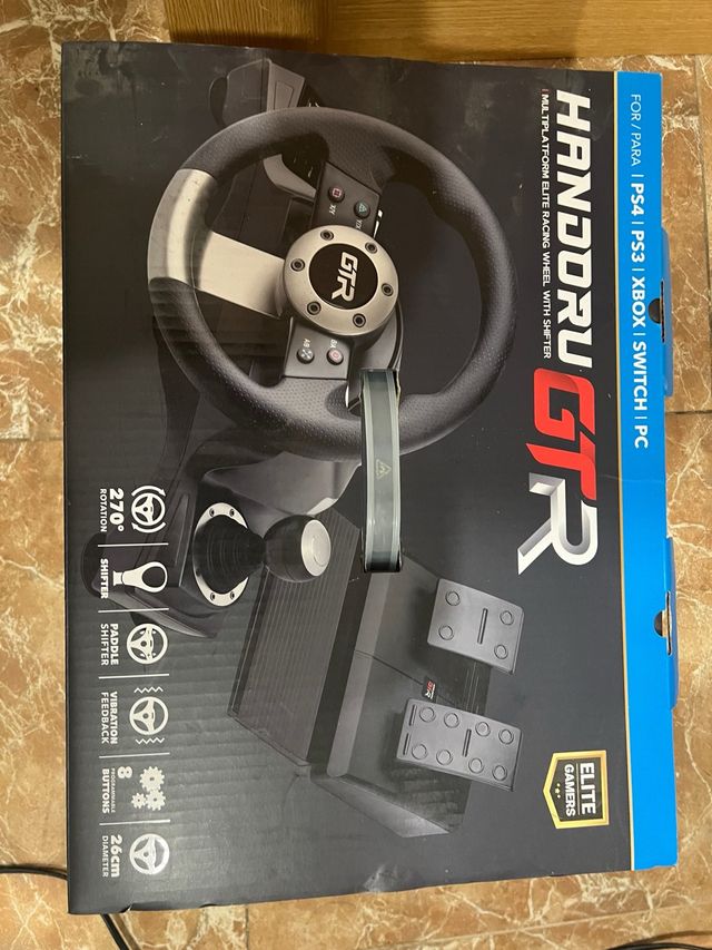 Detalles del productoVendo volante y pedales Handoru GTR en perfecto estado. Es un volante multiplataforma, compatible con PS4, PS3, Xbox, Switch y PC.