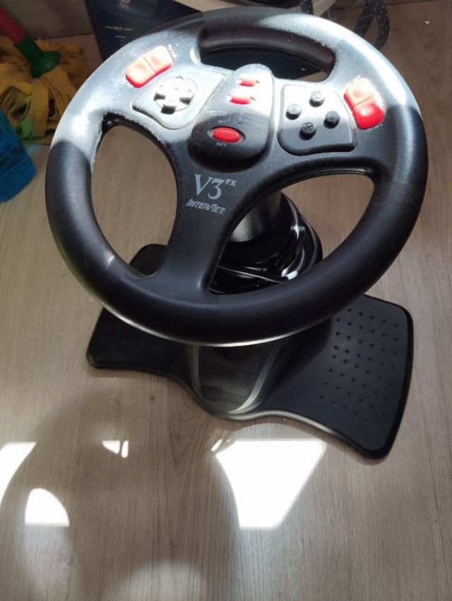 Volante de juegos Interact V3 FX. - Diseño ergonómico para mayor comodidad. - Botones de acción y cruceta digital. - Base con pedales integrados.