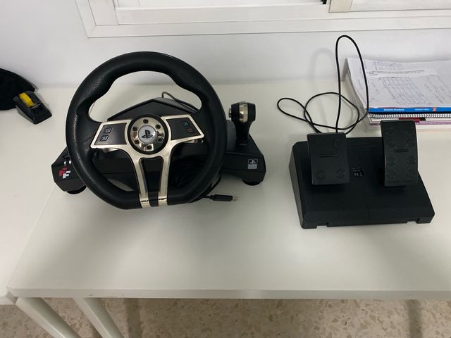 Volante para PlayStation 4 y PlayStation 3 en buen estado. - Incluye pedales. - Diseño deportivo.