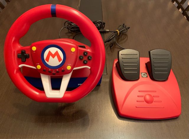 Detalles del productoVolante de carreras con pedales, inspirado en Mario Kart.