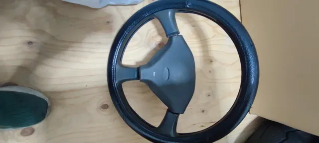 Detalles del productoVolante para Mitsubishi Montero V20,tiene un trozo roto que está reparado con gomas duras por dentro y precintado con tela y es totalmente funcional,regalo también la funda para que no se note nada