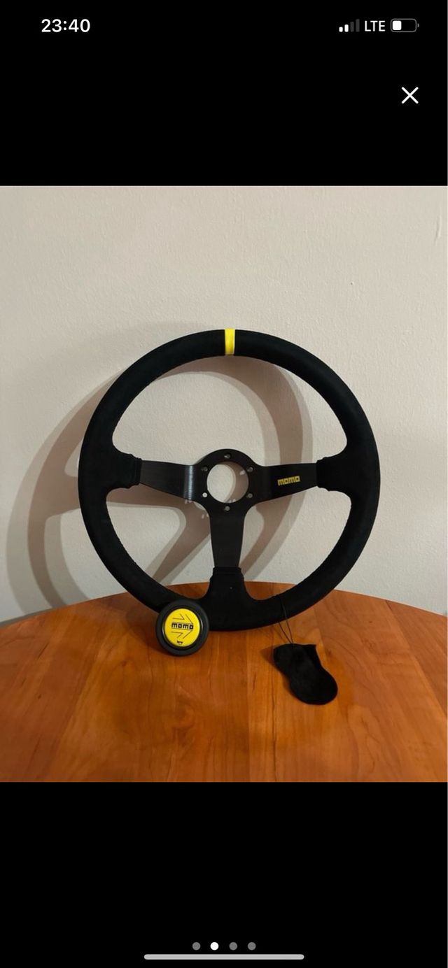 volante desplazado alcantara producto nuevo incluye claxon, cables tornillos y todo lo necesario para montar. piel vuelta. envio 24h 10€ (momo - sparco -sabelt-omp-occ)