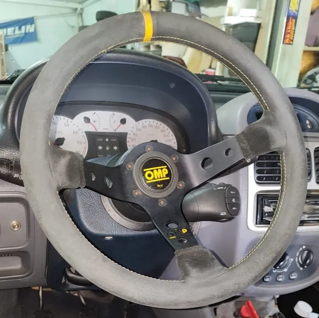 Volante deportivo OMP Corsica de 330mm. - Diseño de competición. - Acabado en ante. - Costuras amarillas. - Marca OMP.