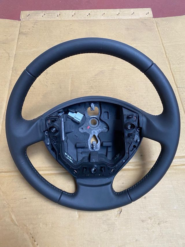 Volante de dirección para Renault Modus. - Material: Piel negra. - Costuras a contraste.