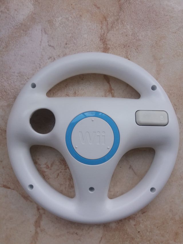 Volante blanco para Nintendo Wii. Diseñado para mejorar la experiencia de juego en títulos de carreras. - Diseño ergonómico. - Color blanco.