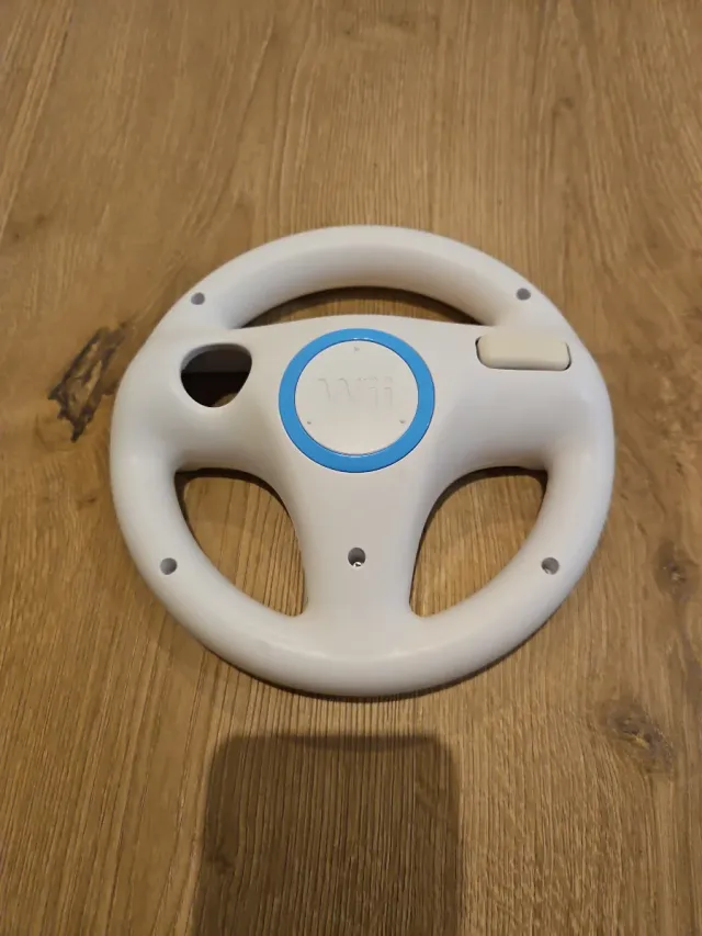Volante blanco para Nintendo Wii. - Diseño ergonómico. - Anillo azul decorativo.