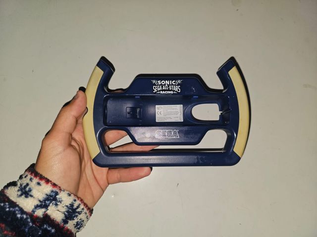 Volante para Wii del juego Sonic All-Stars Racing. - Diseño en color azul y beige. - Logo de SEGA visible.
