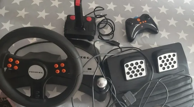Conjunto de volante y pedales. Ps1 y ps2 - Volante con botones. - Pedales de acelerador y freno. - Palanca de cambios.