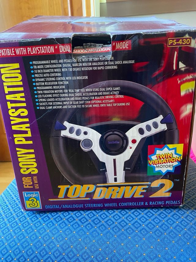 VOLANTE PARA PLAYSTATION PS1 TOP DRIVE 2 LOGIC3 CON PEDALES., MUY BIEN CONSERVADO. FUNCIONA PERFECTAMENTE. PS-430