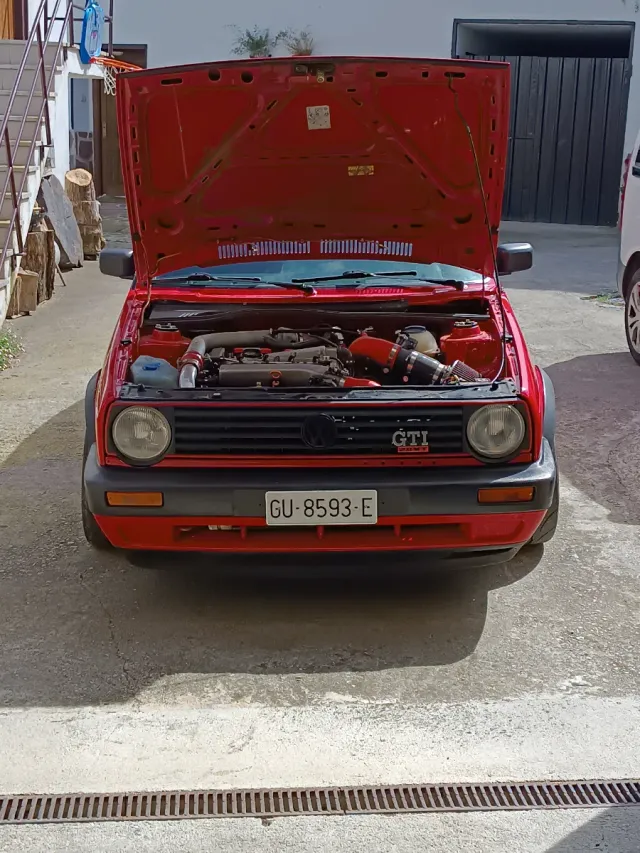 Detalles del productoSe vende Volkswagen Golf mk2 rojo, con swap a 1.8t. Es un coche clásico ágil y rapido. Está dando 260cv y 400 Nm par con 980kg de peso. Tiene turbo k04, autoblocante lsd de discos, suspension tecnoshock de 2 vías específico y tarado para este coche, linea de escape entera en 2,5, radiador de aceite, frenos de 4 pistones....