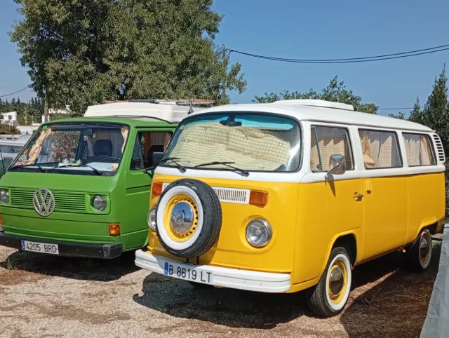 Detalles del productoHola vendemos nurstra Rebe Volkswagen T2 restaurada parte trasera, palafones interior, asientos traseros, cortinas, suelo interior revision al día Motor Boxer 1660 50cv Gasolina muy cuidada y mimada ITV al día pasada a histórica