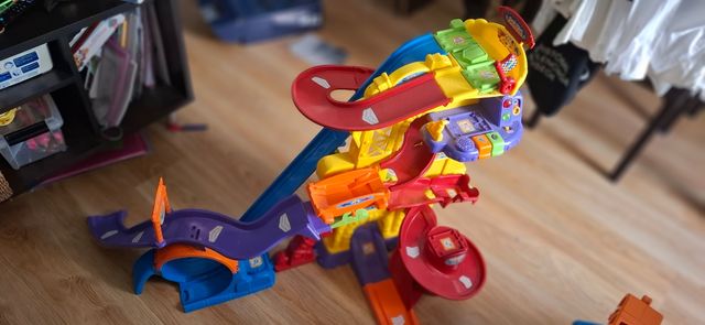 Detalles del productoVarios juegos de pistas de carreras VTech Tut Tut Bólidos en buen estado, con luces, músicay sonidos. Incluye varias piezas para crear un circuito de carreras y conectarlas entre ellas y 11 coches.