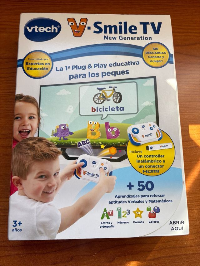 VTech V.Smile TV New Generation en perfecto estado. Incluye un mando inalámbrico y un conector HDMI. Más de 50 actividades para reforzar aptitudes verbales y matemáticas.