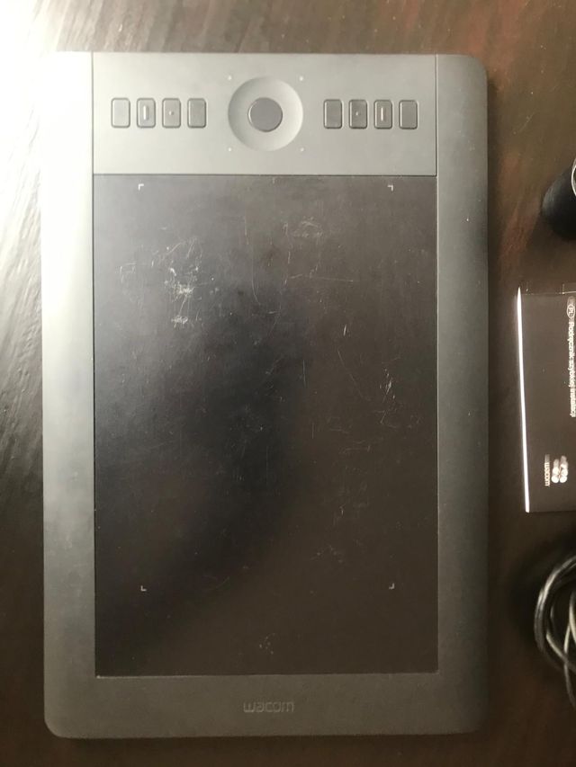 Detalles del productoTableta gráfica Wacom Intuos Pro (modelo 2013). Incluye cable USB original, lápiz con todas las puntas intercambiables originales, y guía rápida original. La superficie de dibujo presenta arañazos visibles, al igual que la parte trasera, pero el funcionamiento es perfecto. Todos los botones, sensores y conexiones operativos. Ideal para ilustración, diseño o uso profesional.