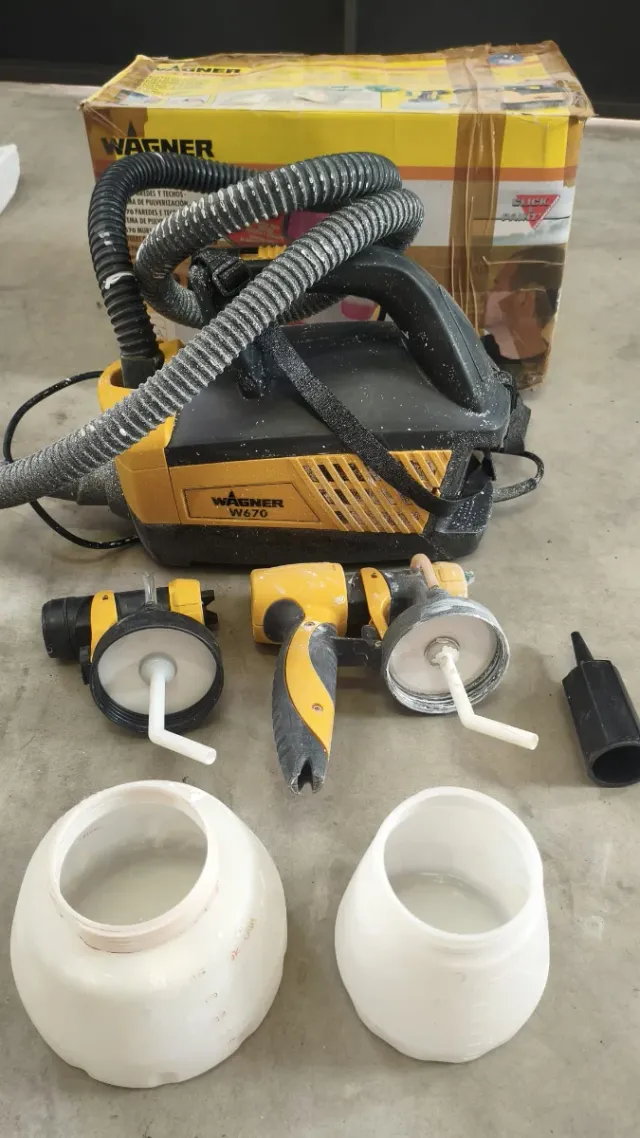 Wagner W 670 en buen estado. Incluye dos pistolas: una para superficies grandes (paredes, vallas, techos) y otra para trabajos más precisos como muebles o detalles. Fácil de usar, potente y con resultados profesionales.