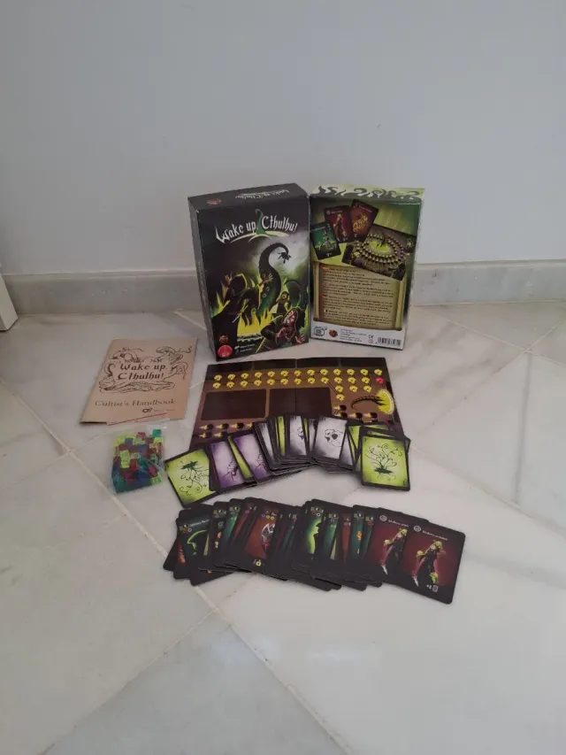 Detalles del productoJuego de mesa Wake up Cthulhu! con todos sus componentes.