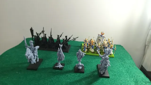 Detalles del productoFiguras de Altos Elfos para Warhammer. Incluye miniaturas de caballería y a pie.
