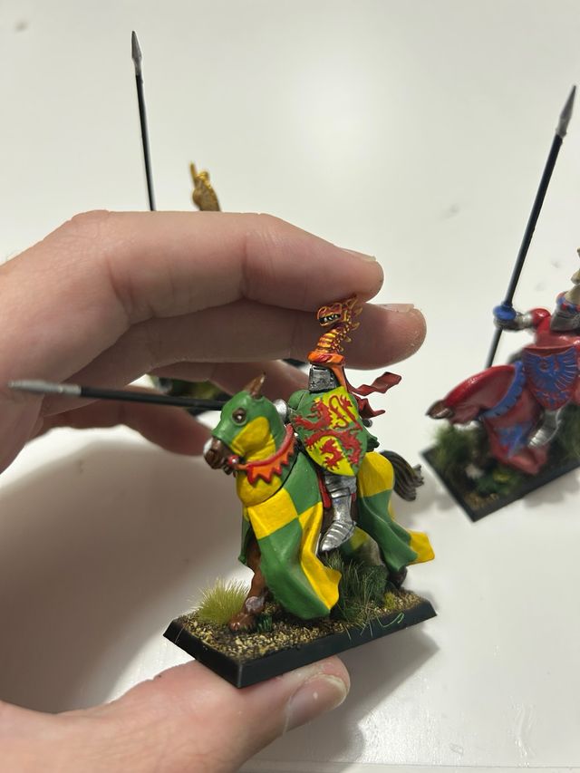 Detalles del productoFiguras de Caballeros Bretonia para Warhammer. Detalladas y listas para pintar o jugar. Modelos antiguos y pintados a muy bien nivel al estilo oldhammer.