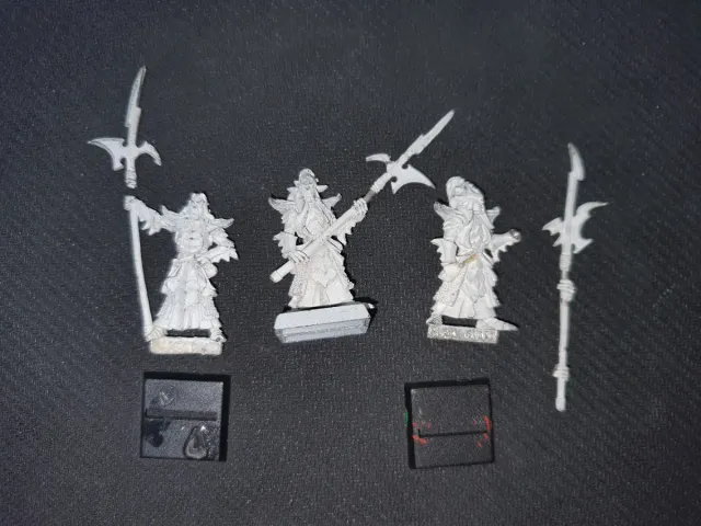 Warhammer fantasy Dark Elf Corsairs 3 figuras de metal,originales.(1 alabarda rota)