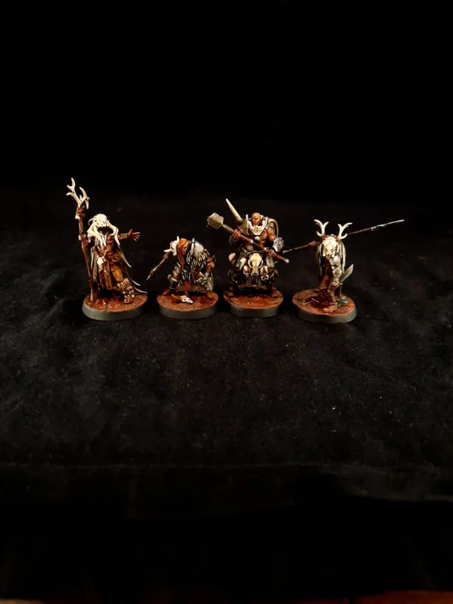 - 4 miniaturas de la Manada Frondaespíritu: Sarrakkar, Gorl, Kheira y Lupan - Todas las tarjetas del mazo