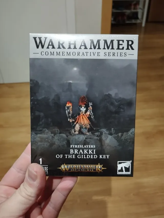 Detalles del productoMiniatura exclusiva de los Fyreslayers, Brakki of the Gilded Key, de la serie conmemorativa de Warhammer Age of Sigmar.