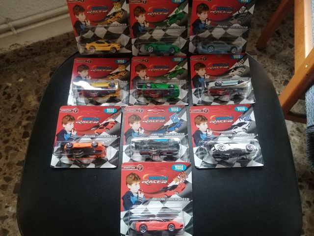 Coches que al soplar por la boquilla giran la ruedas i corren solos. Precintados, 10 unidades