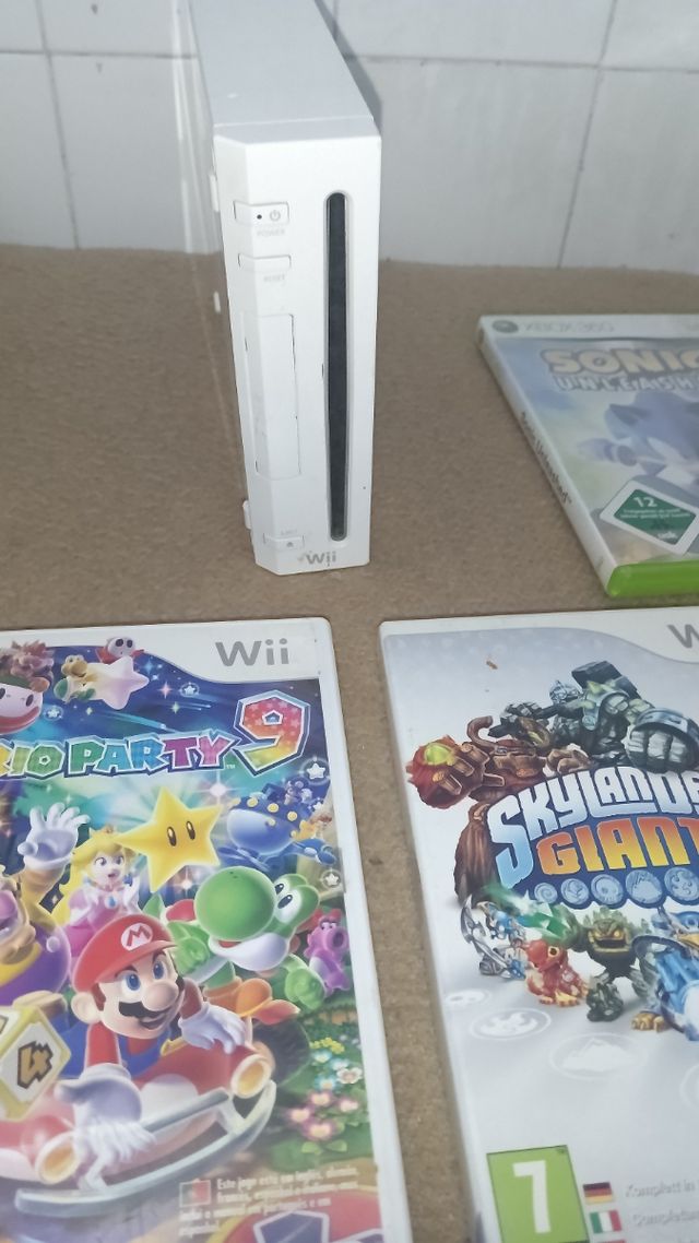Detalles del productoVendo lote compuesto por una consola Nintendo Wii blanca en buen estado y 7 juegos: Mario Party 9, Skylanders Giants, Sonic Unleashed, Skylanders: Swap Force, Pirates of the Caribbean, Harry Potter y Wii Fit Plus. Los juegos están en buenas condiciones. ¡Perfecto para disfrutar de horas de diversión!