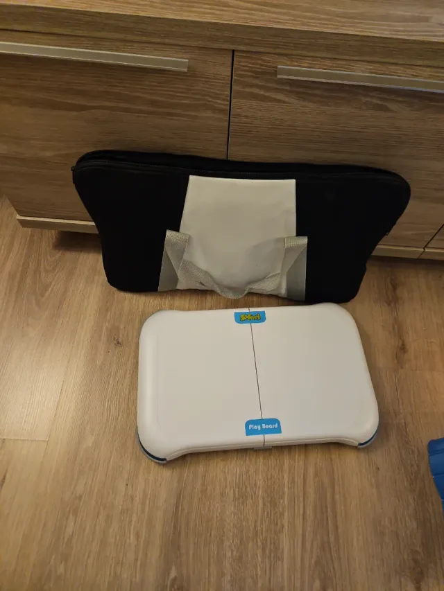 Plataforma de equilibrio Wii Balance Board, edición Safari. - Color blanco con detalles azules. - Incluye bolsa de transporte negra y gris.