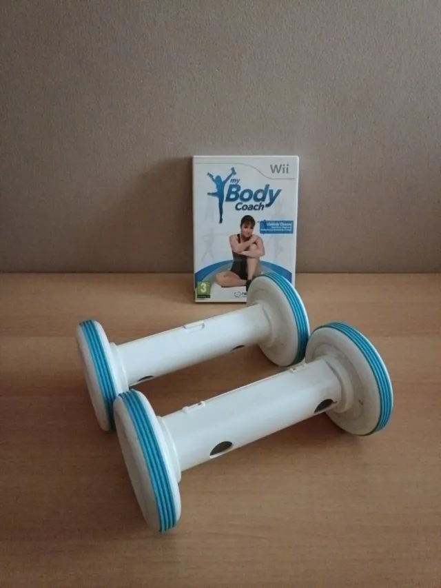Detalles del productoJuego de fitness para Wii My Body Coach junto con un par de mancuernas.