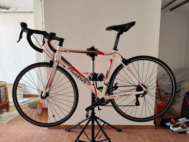- Grupo Shimano Sora, 3 platos y 9 piñones.