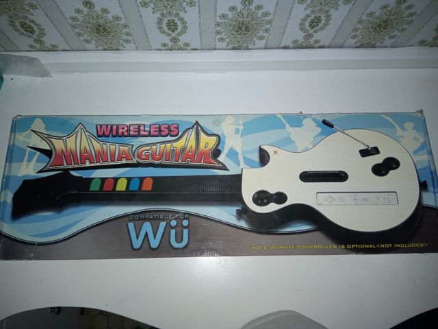 Guitarra para la Wiu caja en malas condiciones por los años se a desgastado guitarra como nueva con su complemento sin usar precio negociable.